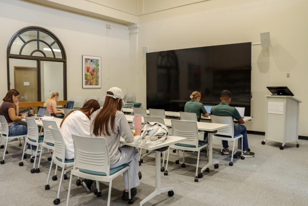 In the heart of the University of Hawaii at Manoa, a transformation was underway at George Hall. The Shidler College of Business – School of Travel Industry Management (TIM) had a vision for a multi-purpose flex space that would serve as a hub for students, events, and teleconferencing. The challenge was presented to us: create a space that was modern, flexible, and functional, while still maintaining the character of the historic building.