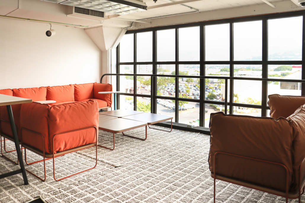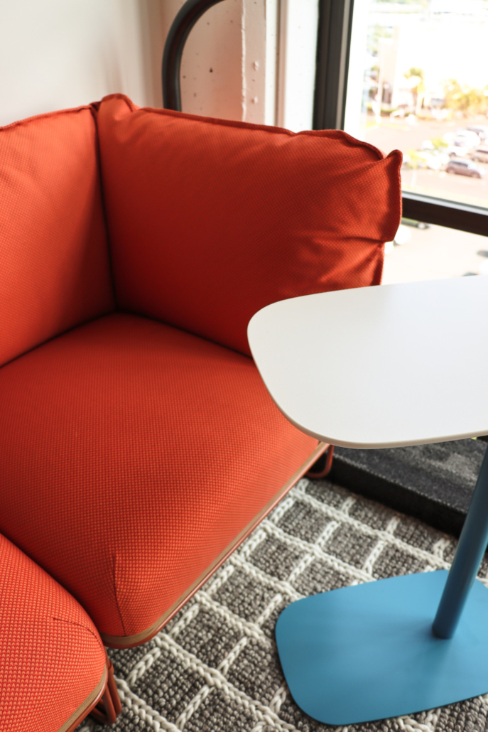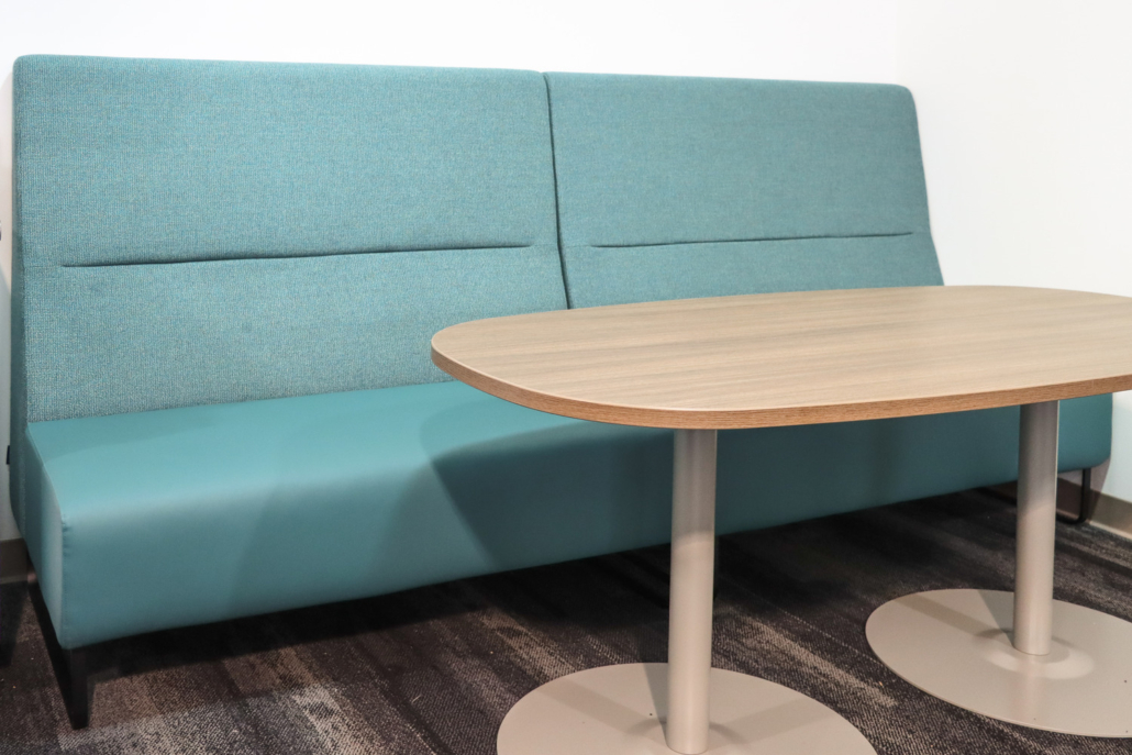 Strategically placed lounge seating provide relaxed areas for recharge or informal meetings—with integrated power and side tables to keep devices charged and ideas flowing.