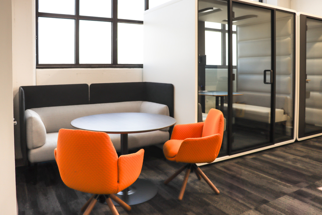 We installed HushFree pods—one individual and one built to fit up to 4 people—to give team members a place to take calls, meet privately, or step away from the main floor without leaving the office.