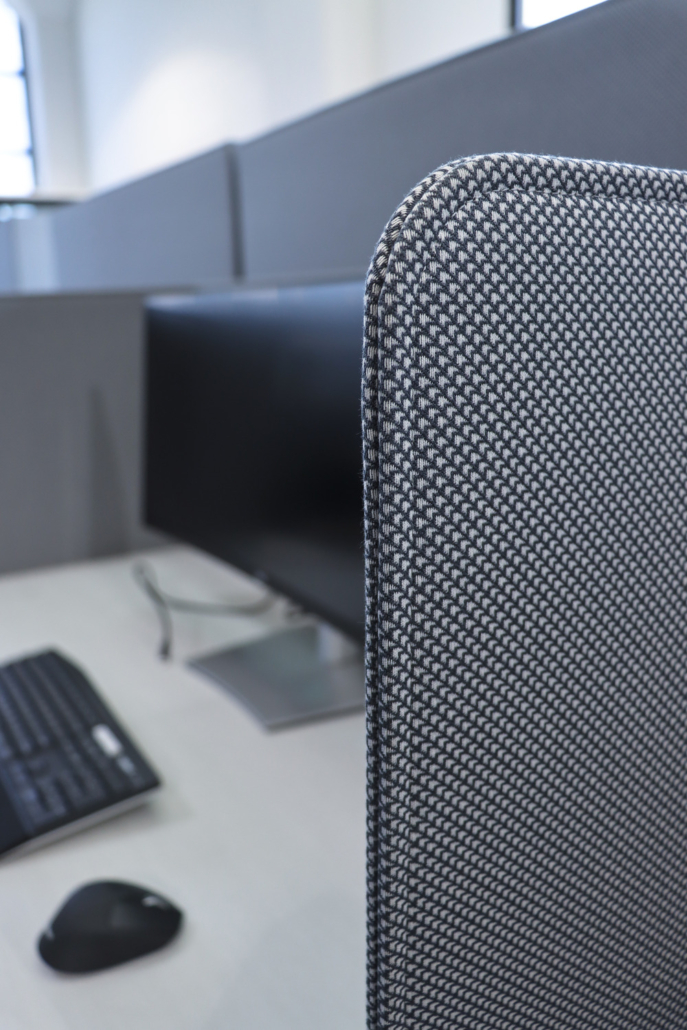 Haworth Compose workstations paired with ergonomic Zody LX chairs offer employees control over how they sit, focus, and engage—with privacy panels and height adjustability built in.