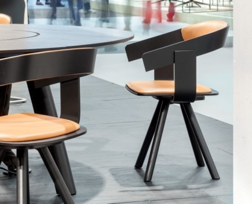 Mix-and-match materials: plastic, wood, or upholstered backs; poly or upholstered seats in various finishes